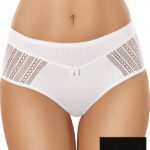 Te figi to połączenie klasycznego stylu i nowoczesnego designu, które z pewnością przypadnie do gustu każdej kobiecie. Majteczki mają gładki tył, co zapewnia elegancki i minimalistyczny wygląd oraz wygodę noszenia pod każdą odzieżą. Niski krój majtek dodaje im zmysłowości i sprawia, że są idealne do noszenia z niskim stanem spodni czy spódnic. Na przodzie figi zdobią delikatne siateczkowe akcenty, które dodają im lekkości i subtelnego uroku. Ozdobna kokarda na przodzie stanowi uroczy detal, który podkreśla kobiecość i dodaje figom wyjątkowego charakteru. Wewnątrz majteczek znajduje się bawełniana wkładka, która zapewnia higienę i komfort przez cały dzień. Te figi to doskonały wybór dla kobiet, które cenią sobie elegancję, komfort i subtelne detale w swojej bieliźnie.
