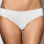Klasyczne, mięciutkie figi damskie wykonane z delikatnego i miłego w dotyku modalu połączonego z elastanem. Zdobione subtelną koronką na brzegach. Gładkie, wysoce komfortowe, bardzo kobiece. W zestawie od razu 2 sztuki, obie białe.