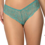 Klasyczne figi damskie, przód gładki z wstawki z koronki, tył wykonany całkowicie z koronki.