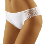 Wyższe figi delikatnie modelujące ciało. Zdobione uroczą koronką wzdłuż linii ud i pośladków. Subtelnie spłaszczają brzuch a tym samym poprawiają proporcje ciała.