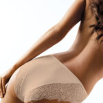 Kochasz wygodną bieliznę z bawełny i jednocześnie masz słabość to zmysłowych, koronkowych zdobień? W tych figach odnajdziesz swój styl. To perfekcyjny balans pomiędzy miękką dzianiną, gładkimi panelami, które sprytnie ukryją się pod odzieżą oraz szykowną, ażurową koronką. Koronka bogato wyeksponowana na pośladkach kusi swymi czarującym, sexy lookiem. Wysoka jakość.