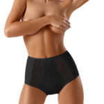 Klasyczne figi damskie z kwiatową koronką. Wykonane z bawełny, wykończone elegancką gumeczką w pasie. Koronkowe dodatki znajdziecie zarówno na pupie jak i z przodu majtek, to sprawia, że figi prezentują się niezmiernie elegancko. Delikatne, płaskie szwy majtek są niewyczuwalne w codziennym noszeniu. Figi szyjemy dla Was z bawełny, materiału nie uczulającego i świetnie chłonącego wszelką wilgoć.
