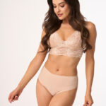 Wygodne figi z wysokim stanem wykonane z wysokiej jakości bawełny. Fason pozwala na zachowanie swobody ruchów. Wysoka linia talii, zabudowane biodra, z przodu wstawki ażurowej koronki.
