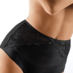 Figi damskie wykonane z gładkiej, miękkiej i przewiewnej tkaniny, która zapewnia komfort noszenia. Delikatne koronkowe zdobienia przy udach dodają subtelnej elegancji. Krój fig kryje brzuszek, a prześwitujący tył nadaje zmysłowy wygląd. W pasie znajduje się delikatna gumka, która dobrze przytrzymuje bieliznę, a wewnątrz znajduje się bawełniana wkładka dla dodatkowej wygody. Figi pakowane są w eleganckie pudełko, co sprawia, że są idealnym wyborem na prezent. Produkt zaprojektowany i uszyty w Polsce, z dbałością o najwyższą jakość.