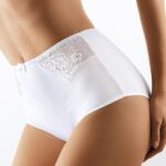 Figi damskie wykonane z gładkiej, miękkiej i przewiewnej tkaniny, która zapewnia komfort noszenia. Delikatne koronkowe zdobienia przy udach dodają subtelnej elegancji. Krój fig kryje brzuszek, a prześwitujący tył nadaje zmysłowy wygląd. W pasie znajduje się delikatna gumka, która dobrze przytrzymuje bieliznę, a wewnątrz znajduje się bawełniana wkładka dla dodatkowej wygody. Figi pakowane są w eleganckie pudełko, co sprawia, że są idealnym wyborem na prezent. Produkt zaprojektowany i uszyty w Polsce, z dbałością o najwyższą jakość.