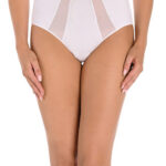 Damskie majtki w kolorze beżowym. Wykonane są z wysokogatunkowej bawełny z dodatkiem elastycznego włókna lycry, są miłe w dotyku i dla kobiecego ciała. Majtki są z wysokim stanem, dzięki czemu maskują kobiece niedoskonałości, maskują tak nielubiany przez kobiety wystający brzuszek i boczki. Majtki są niezwykle komfortowe w użytkowaniu z uwagi na jakość materiału i fasonu. Wokół nóg obszyte są delikatną cienką elastyczną gumką, która nie uwiera, podobnie gumka w pasie jest delikatna i elastyczna. Podtrzymuje majtki na odpowiedniej wysokości, zapobiega przed zsuwaniem się w dół, nie zostawia śladów, nie przecina. Majtki w kroku od wewnątrz wykończone są podwójna delikatną bawełną, która jest oddychająca, absorbującą wilgoć i zapewnia utrzymanie świeżości przez długi czas oraz komfort podczas użytkowania. Majtki posiadają klasyczny prosty fason i są adresowane do kobiet ceniących sobie prostotę. Nie posiadają żadnych wzorów i zdobień, są gładkie. Majtki bawełniane z wysokim stanem doskonale sprawdzają się pod dopasowaną wierzchnią odzieżą. Kolor beżowy komponuje się z ciałem i dlatego doskonale sprawdzają się pod białymi spodniami, ponieważ są niewidoczne. Prane w odpowiedniej temperaturze zachowują swój pierwotny wygląd. Każda kobieta powinna posiadać w swojej garderobie takie majtki z wysokim stanem.
