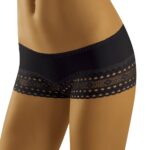 Praktyczne figi i pełniejszym fasonie i wyższym stanie. Białe, ponadczasowe i bardzo wygodne. Przód ozdobiony subtelnie prześwitującą koronką. Tył gładki. Majteczki dobrze maskują drobne niedoskonałości – modelują linię bioder, spłaszczają „boczki” oraz unoszą pośladki. Warto mieć je w swojej garderobie.