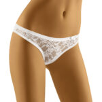 Stylowe figi zdobione zjawiskową koronką po bokach. Delikatna, ażurowa, sprawia, że nogi optycznie wyglądają na dłuższe, a całe biodra prezentują się niesamowicie seksownie.