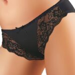 Czarujące figi, w których poczujesz się zgrabnie i kobieco. Góra wykonana z gładkiego tiulu, dół kwiecisty, koronkowy.
