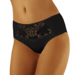 Gabe to nieco pełniejsze figi, które doskonale przylegają do ciała, elastycznie je modelując. Zupełnie gładki tył i przód przeszywa dekoracyjna koronka, zalotnie przebiegająca w przedniej części kompozycji. Duże, delikatne kwiaty o pięknie rozkwitłych pąkach to coś co staje się tutaj inspirującym i wyróżniającym elementem, wprowadzającym niesamowity, bardzo kobiecy wygląd. Wygoda połączona z eleganckim wdziękiem.