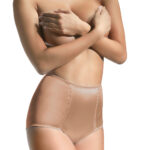 Nieco wyższy fason i wyjątkowa funkcja. Oto figi, które delikatnie modelują sylwetkę – przód uszyto z elastycznej dzianiny, którą pokrywa piękna, kwiecista koronka.