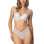 Odkryj subtelną kobiecość i wygodę z figami Nerine w kolorze białym. Wykonane z delikatnej koronki o kwiatowym wzorze, idealnie dopasowują się do sylwetki, zapewniając komfort noszenia przez cały dzień. Wysoka jakość materiałów oraz precyzyjne wykończenie sprawiają, że figi Nerine są idealnym wyborem na każdą okazję zarówno na co dzień, jak i na wyjątkowe chwile. Tylny panel fig z koronką dodaje stylu i elegancji. Wybierz figi Nerine i poczuj się piękna i pewna siebie. Sprawdź teraz figi Nerine i ciesz się połączeniem wygody z elegancją!