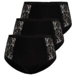 Klasyczne figi damskie w kolorze czarnym wykonane z delikatnej, wysokiej jakości siateczki dla kobiet ceniących sobie wygodę i komfort. Zakrywają całe pośladki, jednocześnie eksponując je, a to za sprawą przezroczystej siateczki. Połączona jest ona z piękną zmysłową koronką, która wszyta została z jednej strony z przodu u góry. Całość wygląda bardzo efektownie. Obszycia wokół nóg wykonane są z cienkich elastycznych gumeczek, które dobrze dopasowują się do ud, nie uciskając ich i nie zostawiając śladów. Nieco szersza, równie elastyczna gumka wszyta jest w pasie, dzięki czemu dobrze podtrzymuje majtki. Od wewnętrznej strony w okolicach kroku figi podszyte są wyjątkowo delikatną i przewiewną bawełną, dzięki czemu ciało kobiece będzie przez cały dzień odczuwało świeżość i komfort.