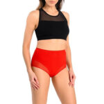 Figi klasyczne z wysokim stanem w kolorze białym. Powabne majteczki damskie z przezroczystej i miękkiej w dotyku siatki połączonej z elegancką, delikatną koronką o motywie kwiatowym, która wszyta jest z przodu po obu stronach. W środek wkomponowana jest siateczka, która swymi pionowymi cięciami modeluje sylwetkę. Wokół ud mocne zastosowano wycięcia, które optycznie wydłużają nogi. W okolicach kroku wszyta jest delikatna bawełna absorbująca wilgoć, tym samym dając komfort noszenia. W pasie i wokół nóg majtki z wysokim stanem wykończone są cienkimi delikatnymi gumkami. Tył wykonany jest z siatki, jednocześnie zasłania i eksponuje pośladki. Zachęca, uwydatnia, a zarazem kryje. Majtki z wysokim stanem są niezwykle efektowne i chętnie noszone przez kobiety lubiące dobrze wyglądać.