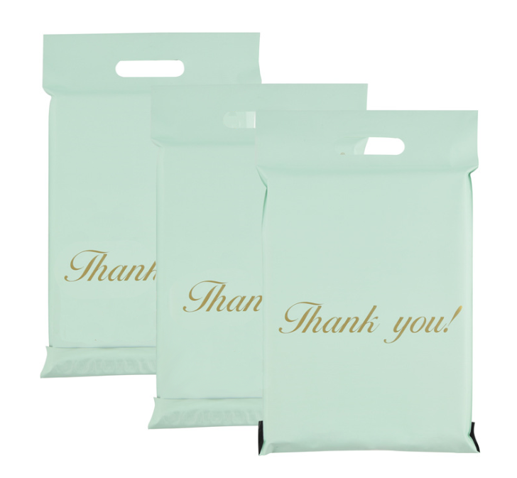FOLIOPAK KURIERSKI FOLIOPAKI MIĘTOWE z RĄCZKĄ 500 x 600 + 70 mm (rączka) 50 szt z napisem „Thank You”
