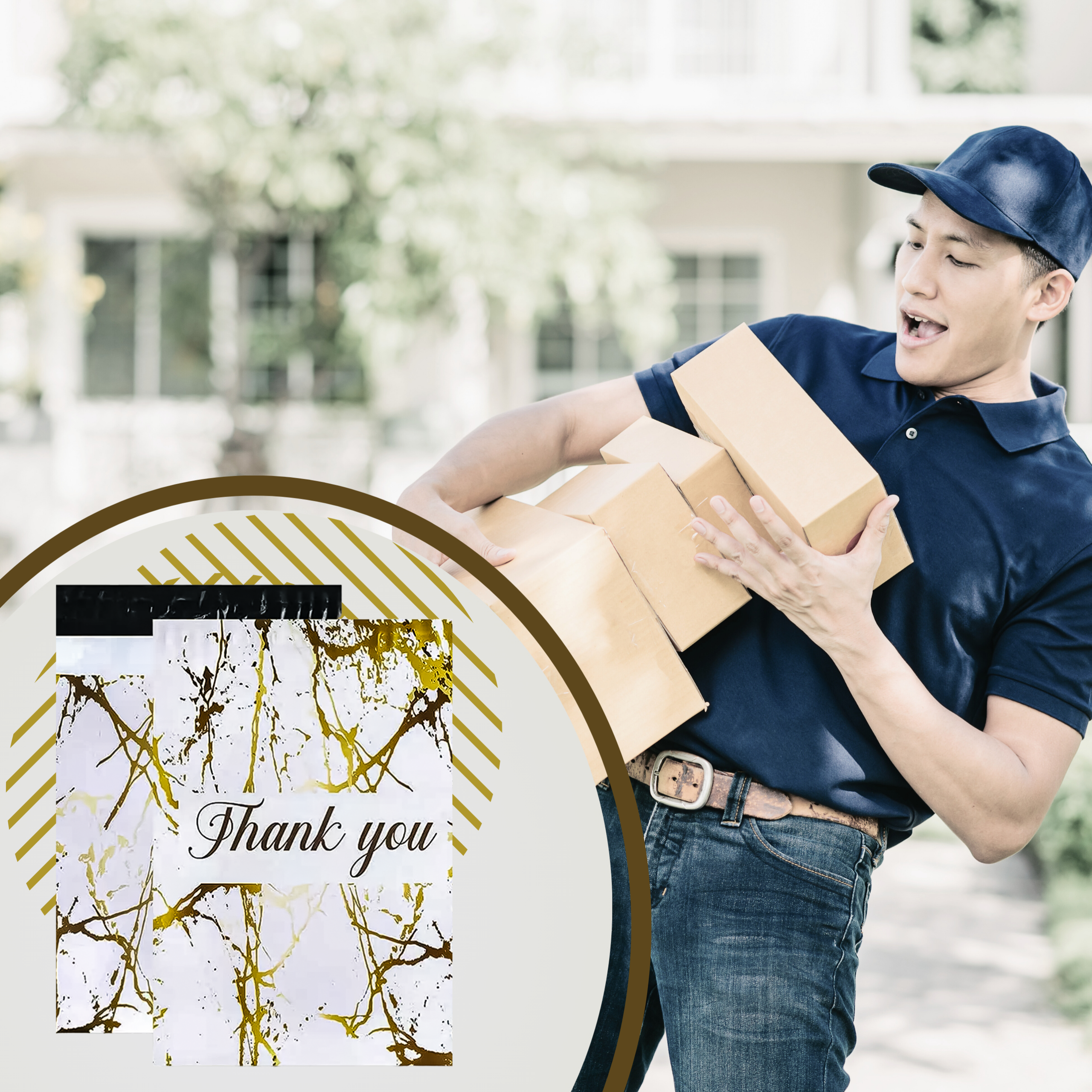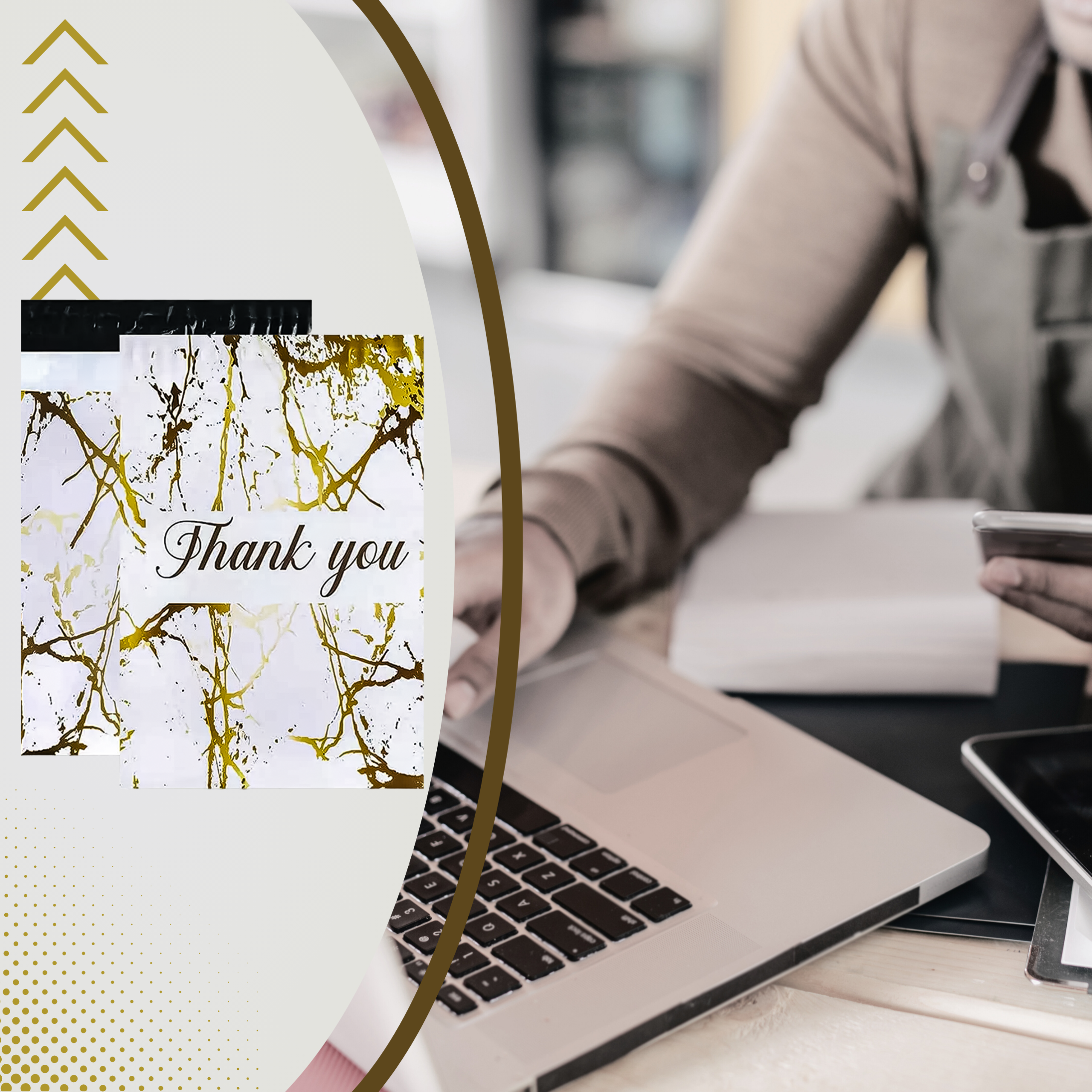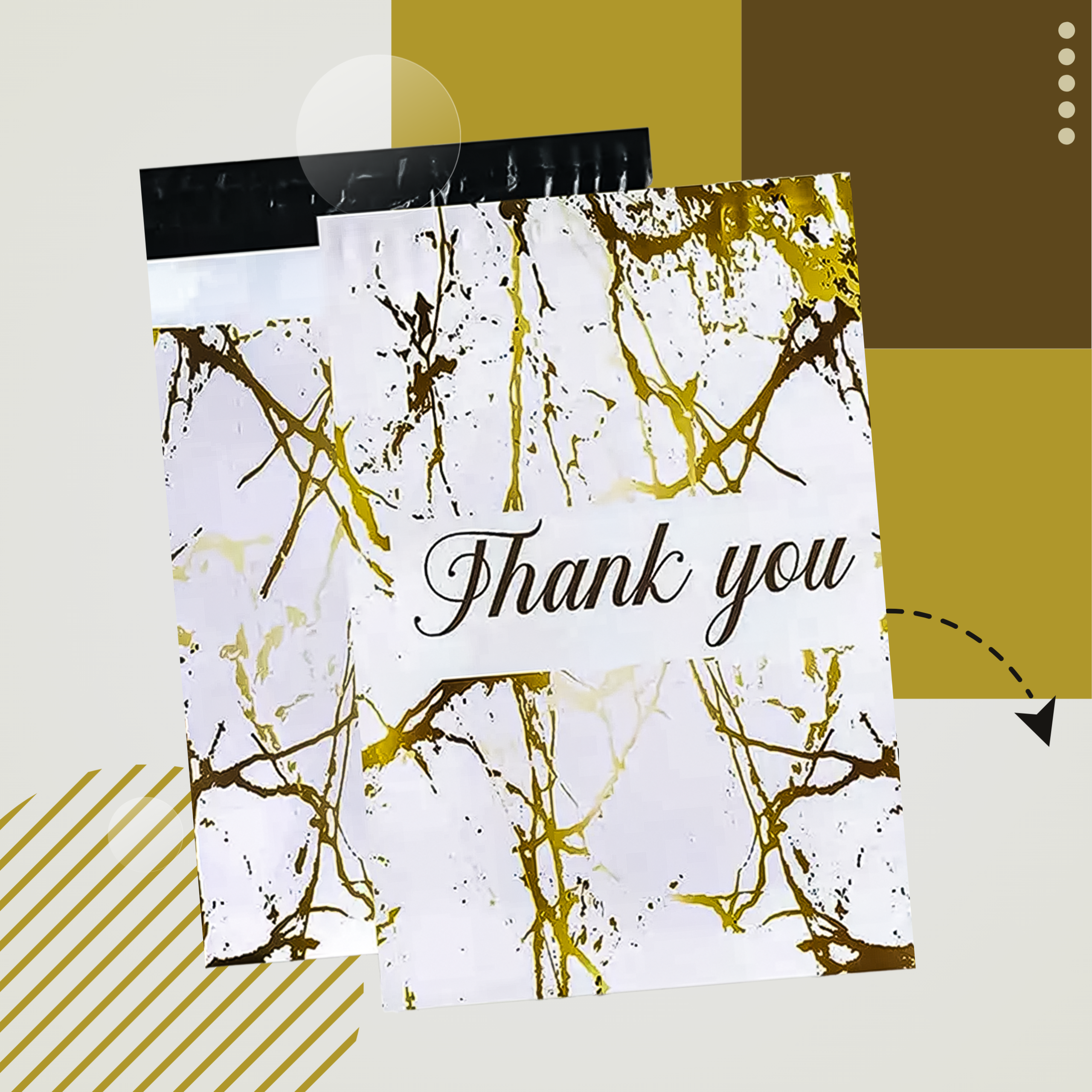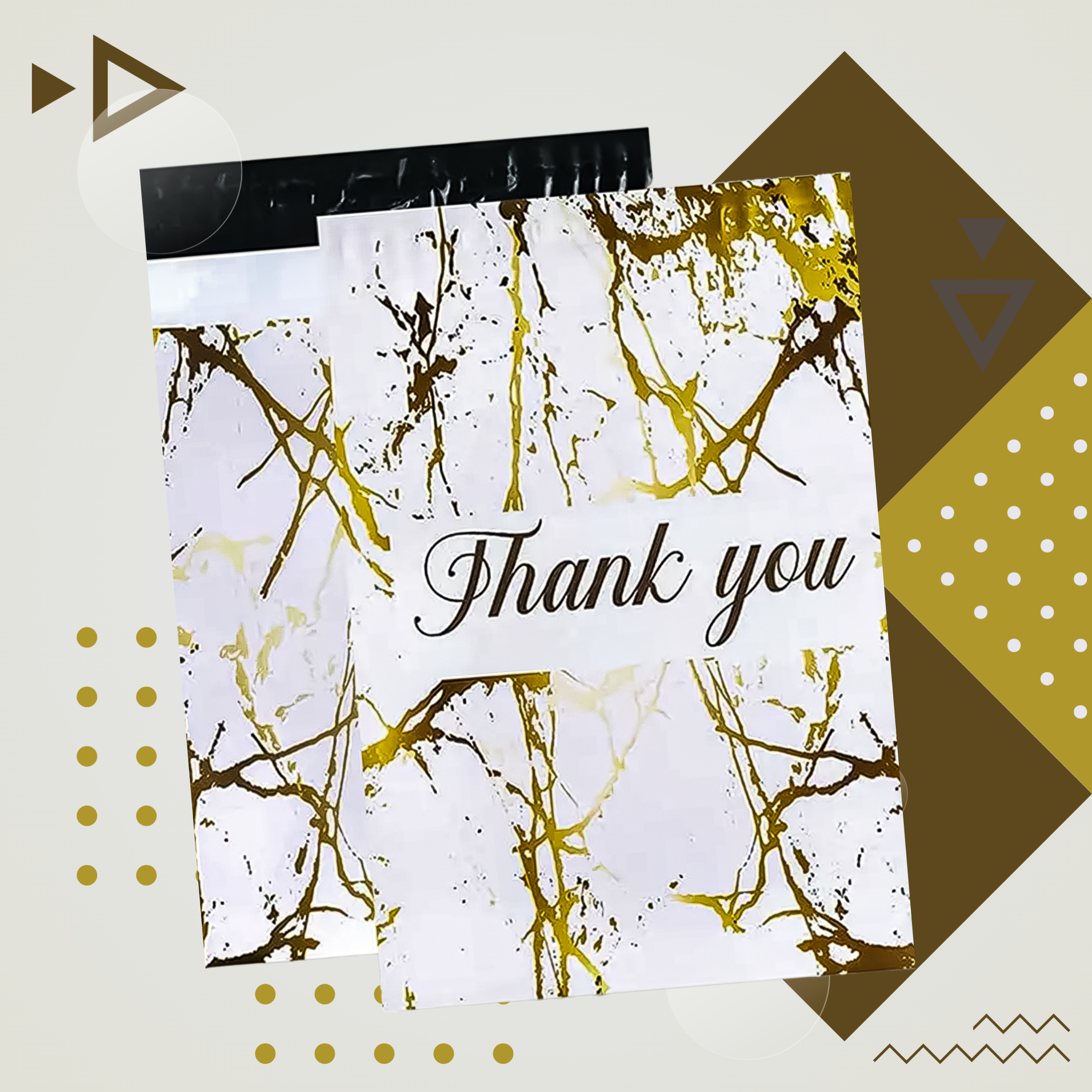 FOLIOPAKI KURIERSKIE ZŁOTE WZÓR MARMUR 255 x 370 mm 50szt THANK YOU