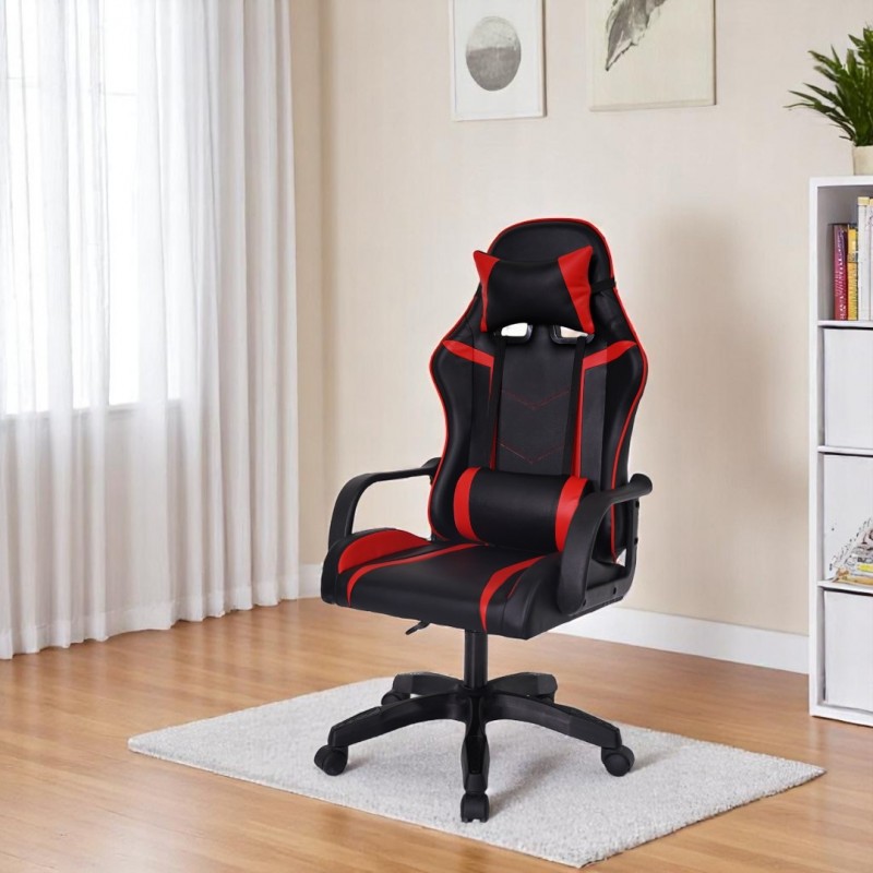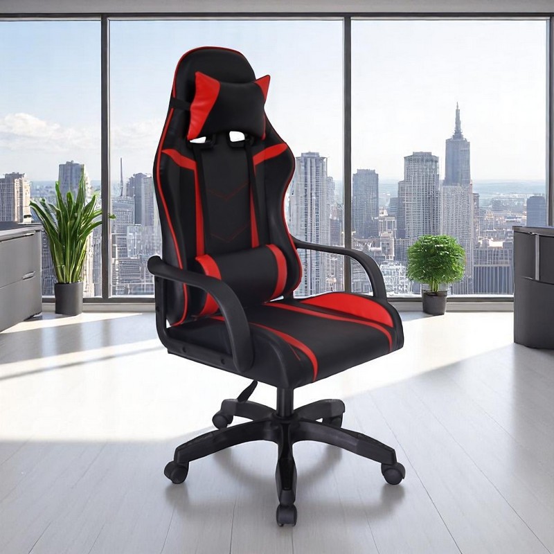 Fotel gamingowy, biurowy obrotowy VORTEX czarny, czerwony ekoskóra KO35CZE