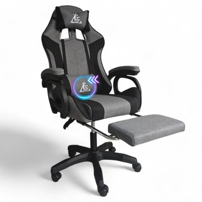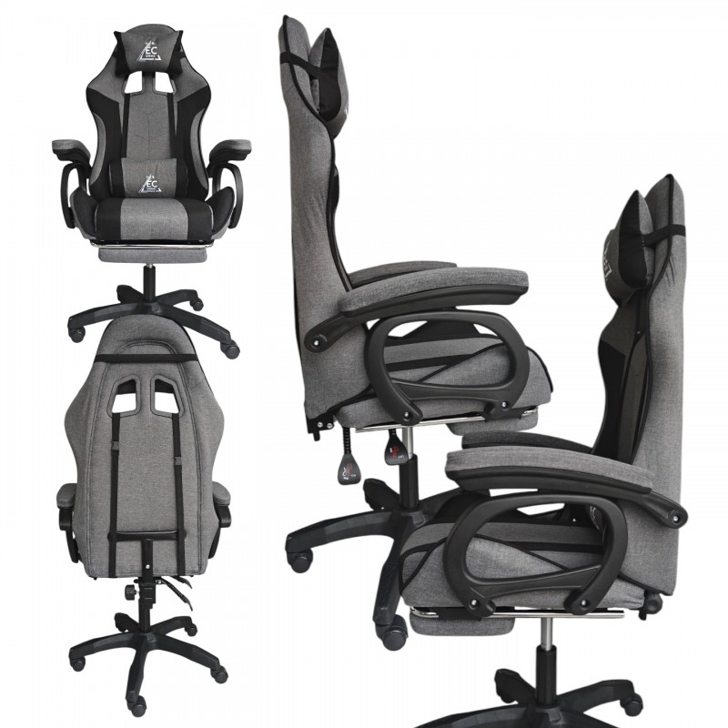 Fotel gamingowy obrotowy STRIKE z podnóżkiem i poduszką masującą, szary KO40SZ