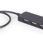 4-portowy HUB ze zintegrowanym kablem USB typu C oferuje zwiększenie liczby portów USB w komputerze lub laptopie, pozwalając podłączyć więcej urządzeń.
