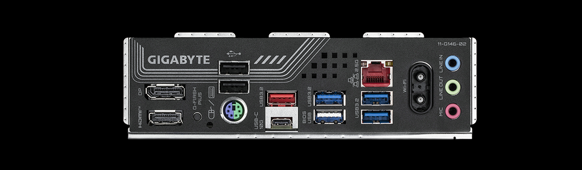 | Złącza I/O na tylnym panelu | 1x HDMI, 1x DisplayPort, 1x USB Type-C, 1x USB 3.2 Gen 2, 3x USB 3.2 Gen 1, 3x USB 2.0, 1x PS/2 (combo), 1x RJ-45, 2x Złącze anteny Wi-Fi, 3x Audio jack |