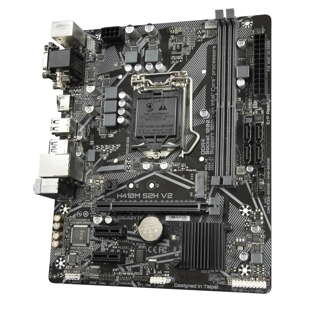 Płyta główna Gigabyte H410M S2H V2 obsługuje najnowsze procesory Intel® Core™ 10. generacji. Wspiera moduły RAM o taktowaniu do 2933 MHz i pozwala na podłączenie do 64 GB pamięci RAM. Złącze M.2 z interfejsem PCIe Gen3 x4, pozwala na podłączenie szybkich dysków SSD. Technologia chłodzenia Smart Fan 5 gwarantuje, że komputer będzie mógł utrzymać wydajność przy zachowaniu niskiej temperatury.
