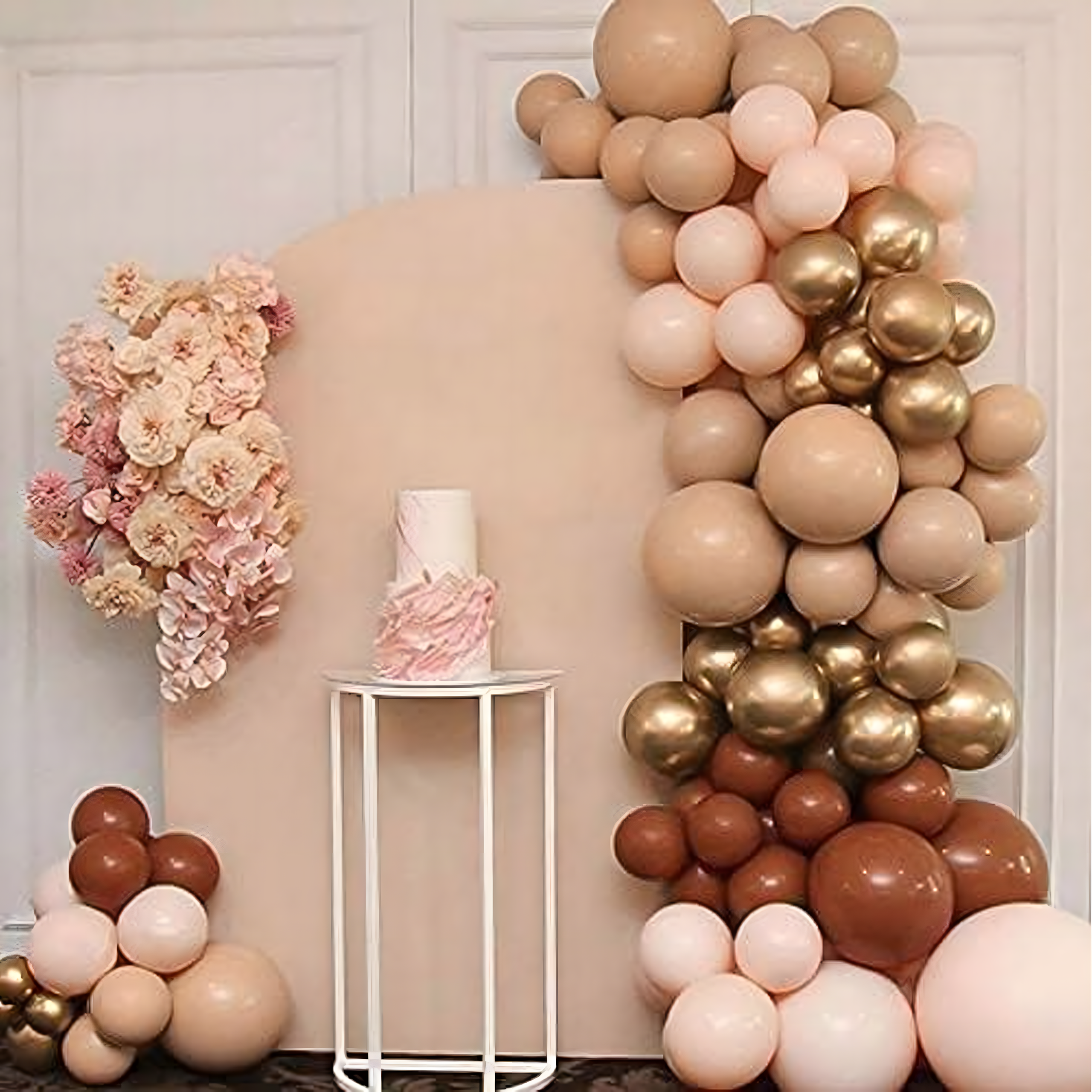Girlanda balonowa w odcieniach brązowego koloru 132 elementy – elegancki zestaw dekoracyjny idealny na urodziny, wesela, sylwestra i eventy. Łatwy montaż, efektowne kolory i idealne tło do zdjęć!