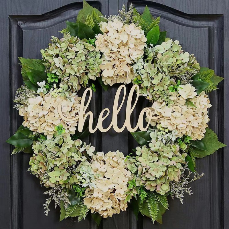 Girlanda, wianek ozdobny na drzwi, jesienny, HORTENSJE, napis HELLO WSN29