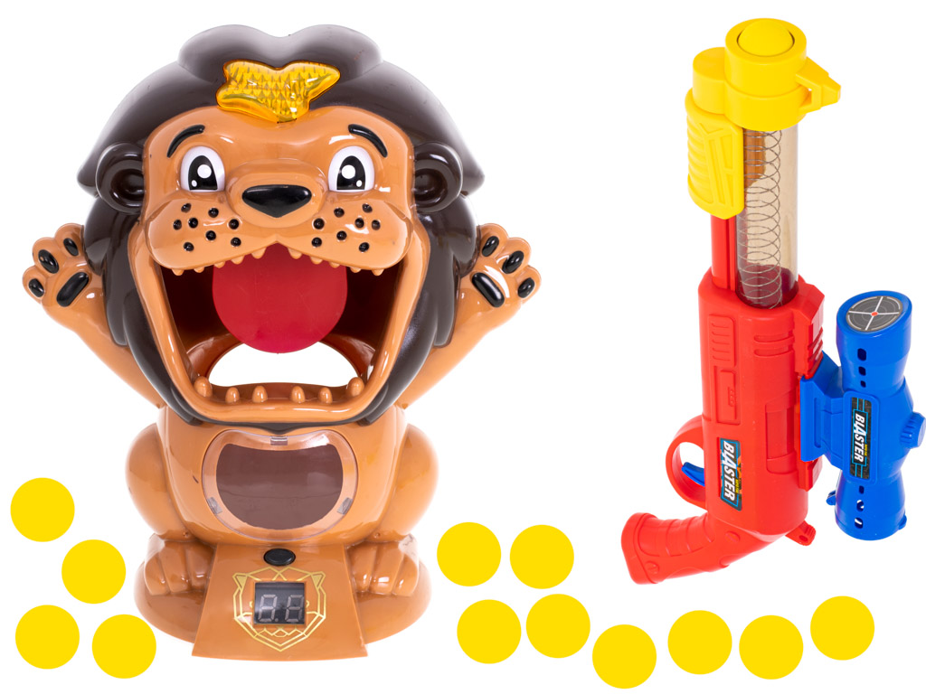 Głodny lew strzelanie do celu gra zręcznościowa zestaw pistolet i kulki