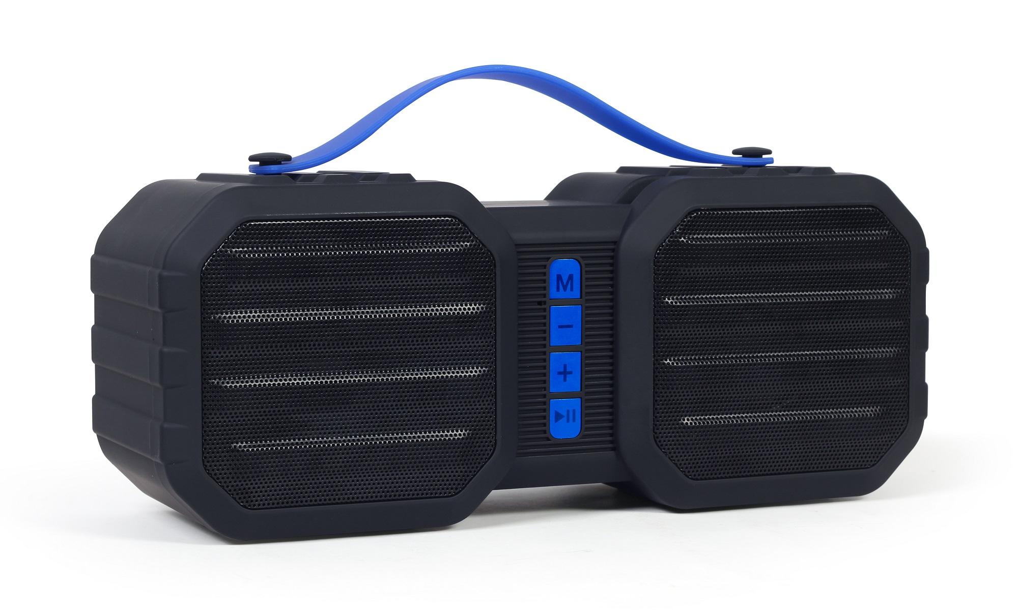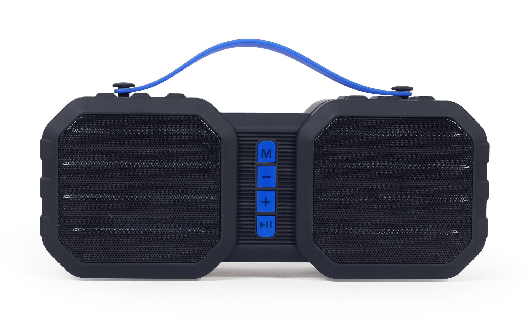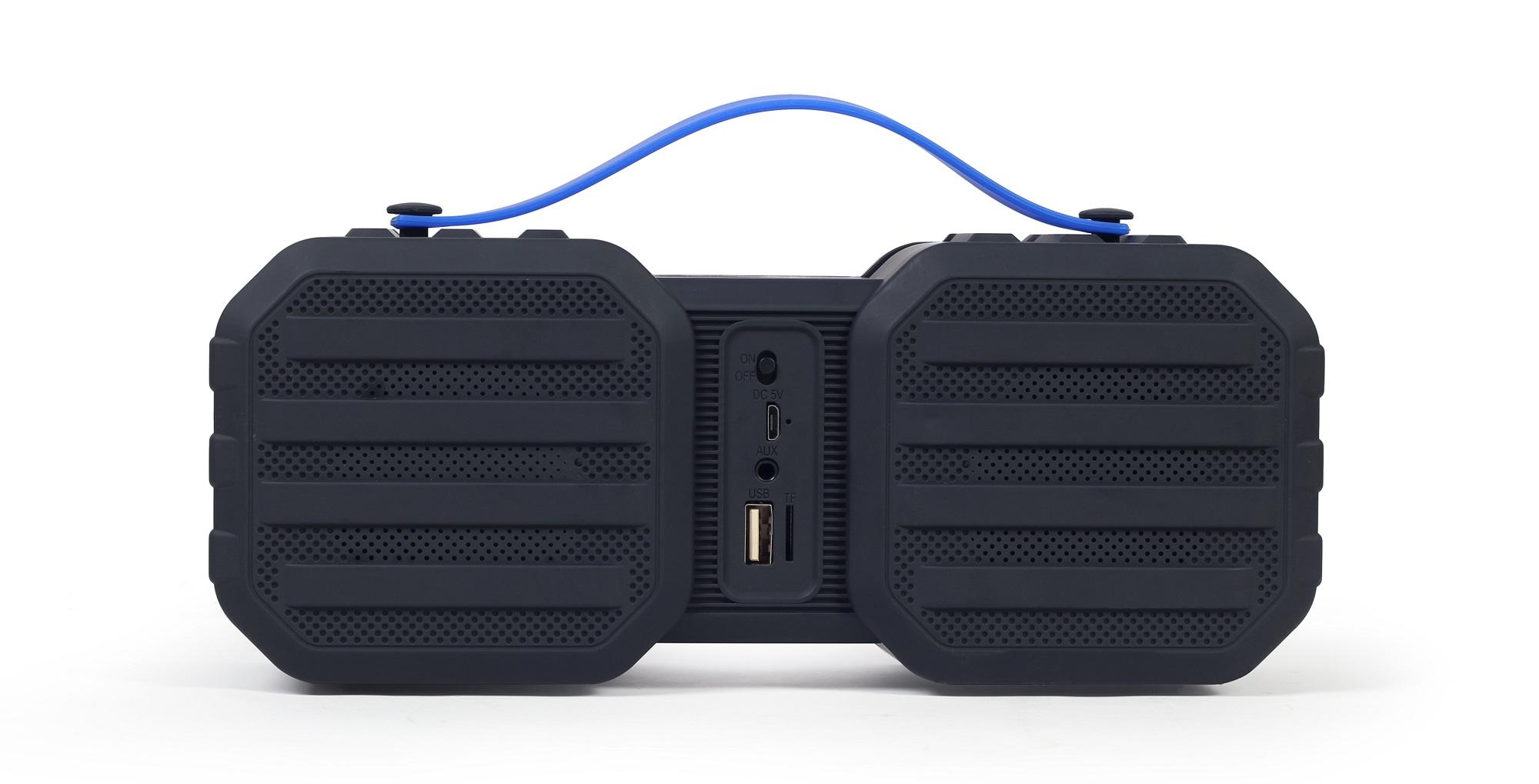 Przenośny głośnik Bluetooth. Głośniki 2 x 3 W zapewniają krystalicznie czysty, wciągający dźwięk. Idealny do użytku z telefonem komórkowym lub tabletem. Zasięg sygnału wynosi do 10m. Głośnik daje możliwość odtwarzania muzyki bezpośrednio przez kabel AUX 3,5 mm, z pamięci USB lub karty micro SD o maksymalnej pojemności 32 GB. Bateria o pojemności do 200 mAh zapewnia do 4 godzin nieprzerwanej pracy. Może być również używany jako zestaw głośnomówiący Bluetooth