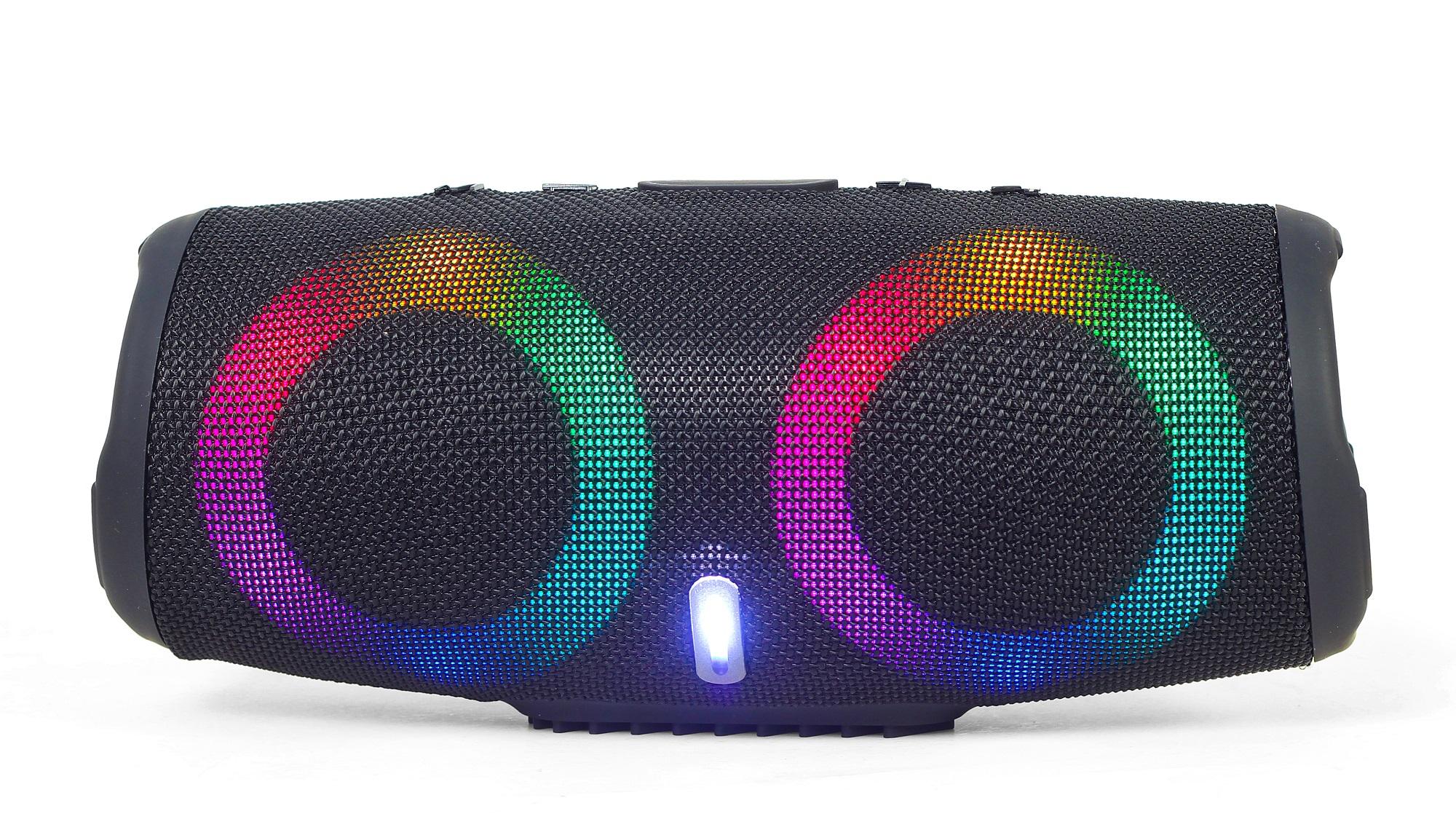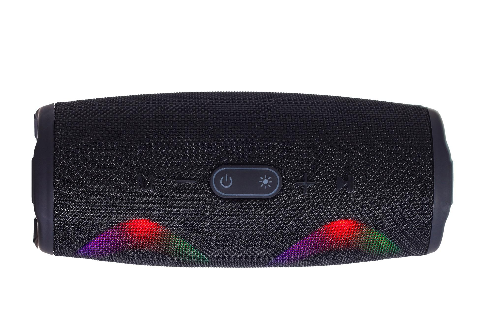 Przenośny głośnik Bluetooth z głośnikiem 5W o średnicy 75 mm zapewniają krystalicznie czysty, wciągający dźwięk. Idealny do użytku z telefonem komórkowym lub tabletem. Zasięg sygnału wynosi do 10m. Głośnik daje możliwość odtwarzania muzyki bezpośrednio przez kabel AUX 3,5 mm, z pamięci USB lub karty micro SD o maksymalnej pojemności 32 GB. Bateria o pojemności do 1200 mAh zapewnia do 4 godzin nieprzerwanej pracy. Wielokolorowy efekt świetlny LED miga i zmienia kolory.