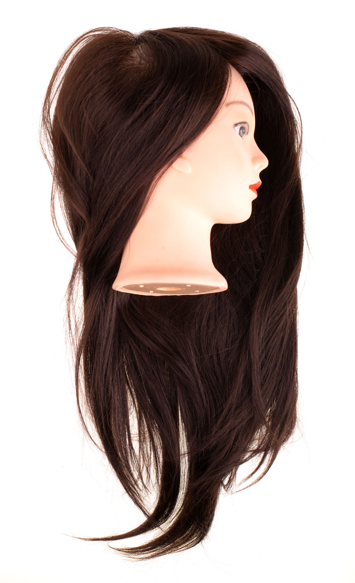 Głowa fryzjerska treningowa z naturalnymi włosami. Można na niej wykonać wiele łatwiejszych jak i bardziej zaawansowanych fryzur. Model nie zawiera uchwytu w zestawie. Kolor włosów: brąz dł. włosów ok 60-70cm. Zapakowane w foliowe opakowanie.
