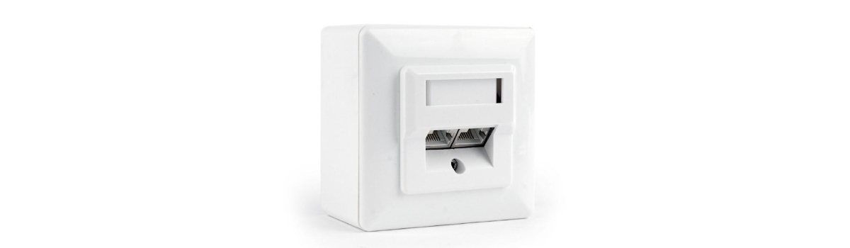 2-portowe gniazdo natynkowe do montażu ściennego kategorii 6. Produkt cechuje się ekranowaniem STP. Pozwala na wygodną instalację kabla sieciowego.