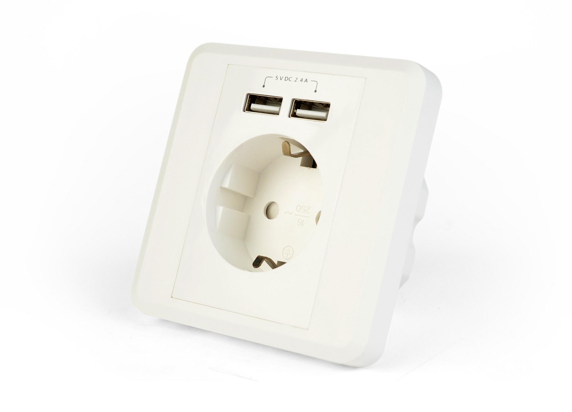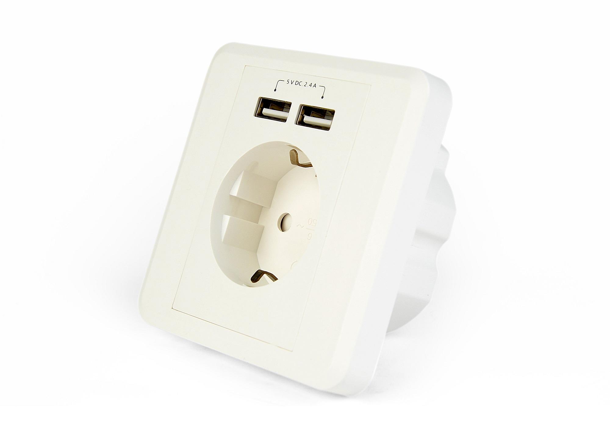 Gniazdo zasilające z puszką podtynkową Gembird EG-ACU2A2-01 (białe)
