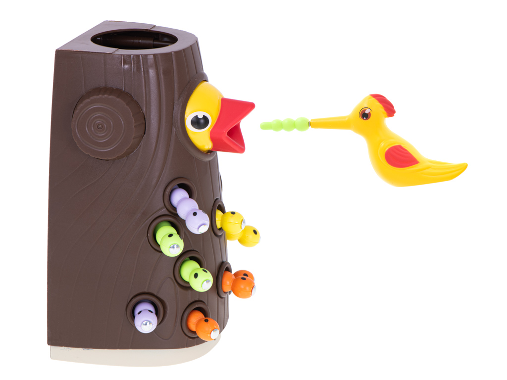 Świetna gra magnetyczna. Polega na łowieniu robaczków i karmieniu ptaszka. Zabawa pozytywnie wpłynie na koordynację wzrokowo-ruchową dziecka. W zestawie: 12 robaczków, drzewko, dzięcioł. Tworzywo: plastik. Dł. robaczka: 4,5cm. Wym. drzewka: 10×8,5×18,5cm.