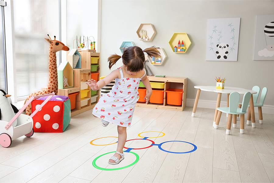 super zabawy – skakanie po torze pomaga rozwijać ogólną sprawność dziecka.