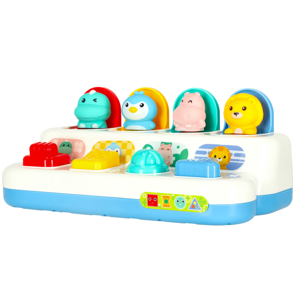 Wbijak wyskakujące zwierzątka – gra edukacyjna pop-up o charakterze łamigłówki dla dzieci. Uruchom przyciski i pokrętła na planszy, by uwolnić zwierzątka. Zabawka wspiera koordynację wzrokowo-ruchową i małą motorykę. Wymiary: 25 cm x 13 cm x 11 cm