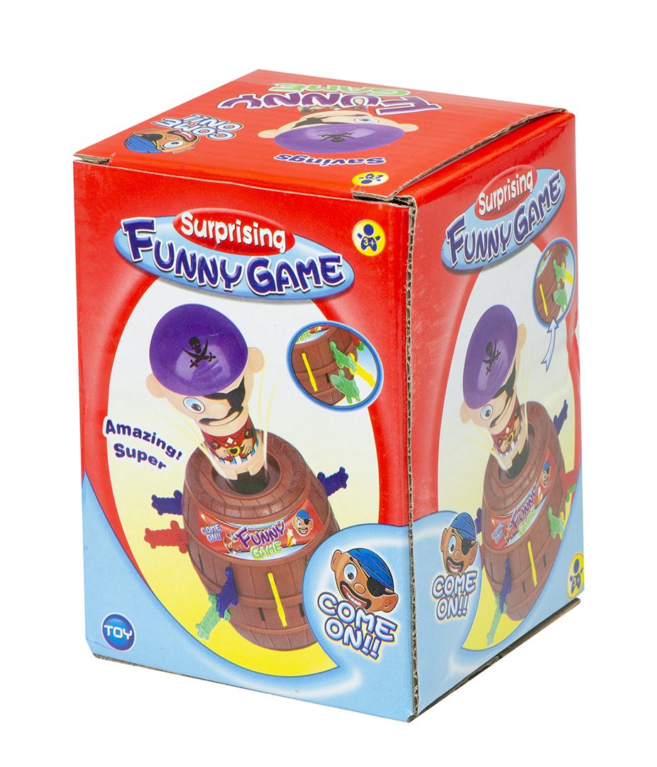 Fantastyczna gra zręcznościowa dla całej rodziny. Zabawa polega na wkładaniu w beczkę mieczy w taki sposób, aby nie ukuć pirata. Dźgnięty pirat wyskakuje z beczki. Liczba graczy:1-4. Tworzywo: plastik. Wymiary:9x9x12cm