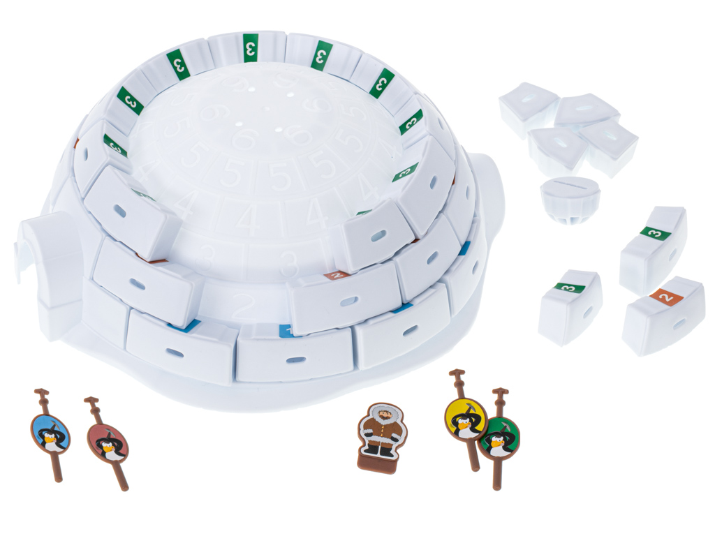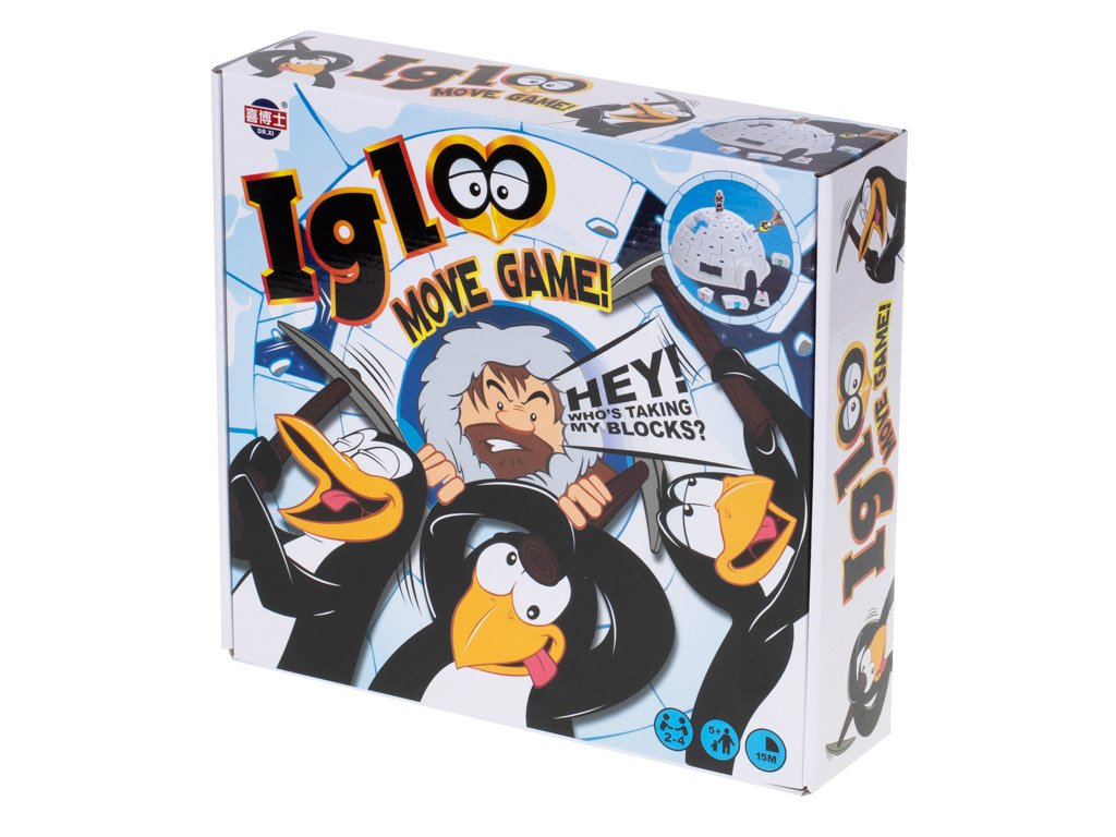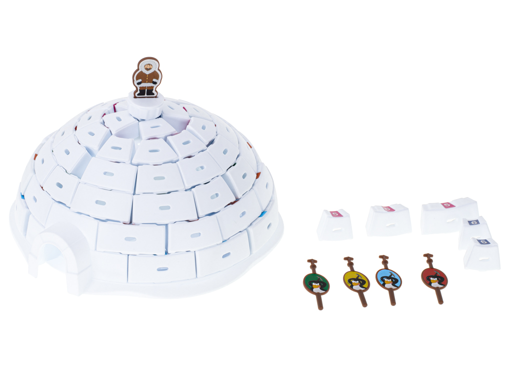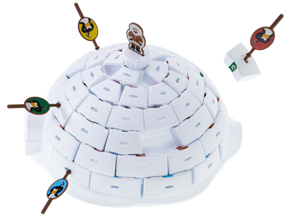 Fantastyczna gra zręcznościowa zbuduj igloo. Wciel się w rolę pingwina i burz igloo, ale w taki sposób, aby nie spadł. Poprawia zdolności manualne. Tworzywo: plastik. Ilość graczy: 2-4 osoby. Wiek dziecka: 5+. Wym: igloo – 21x24cm, pingwinka – 4,5x2cm.