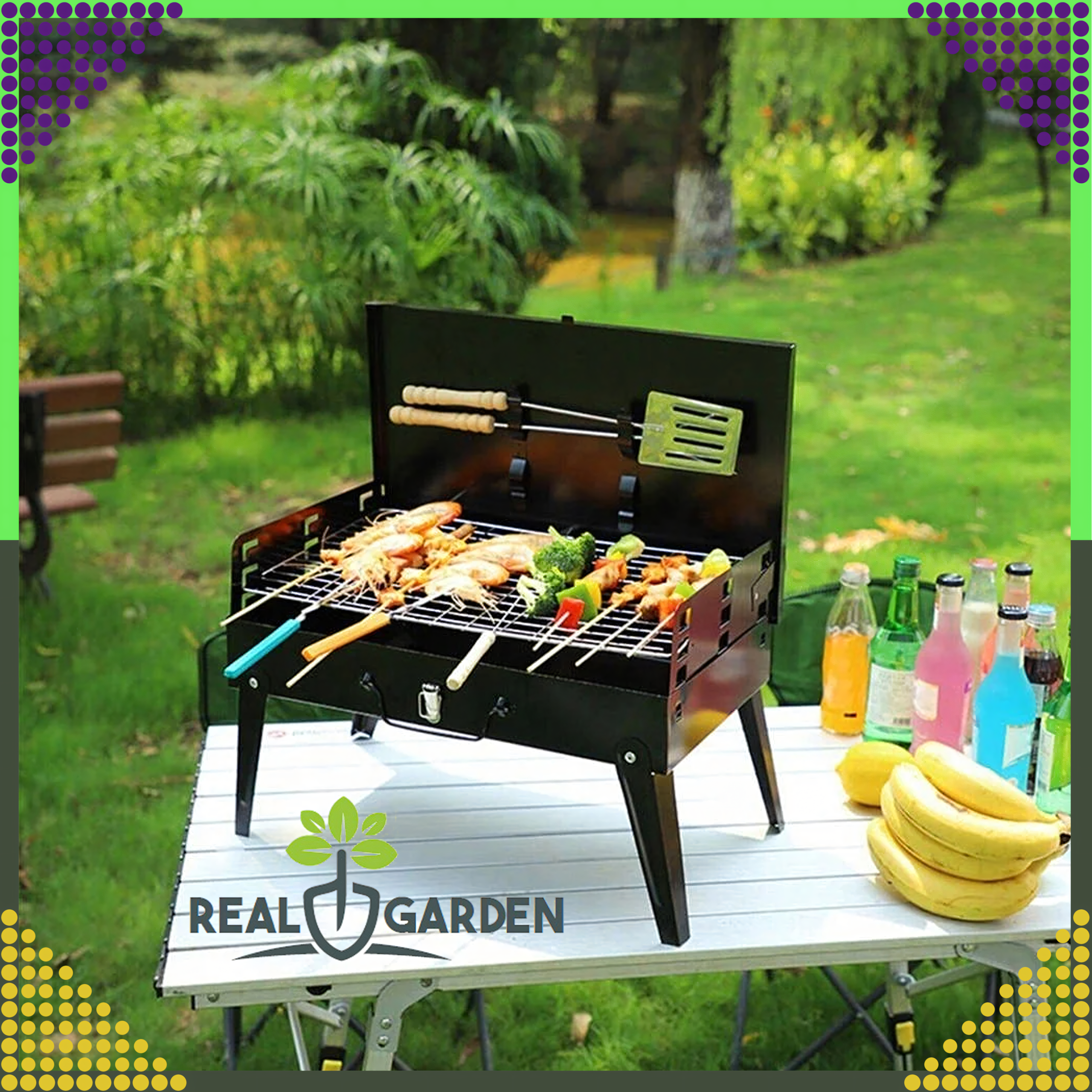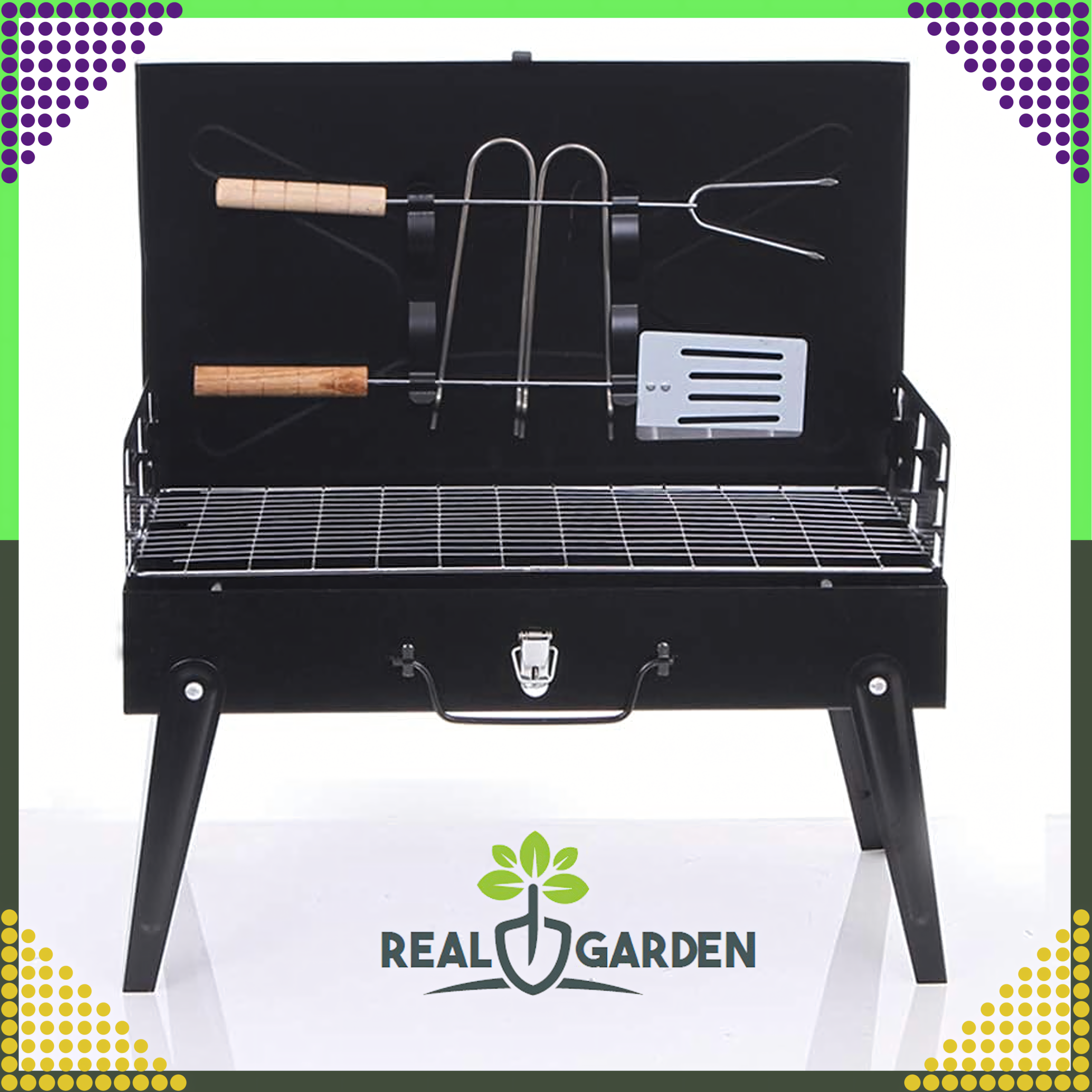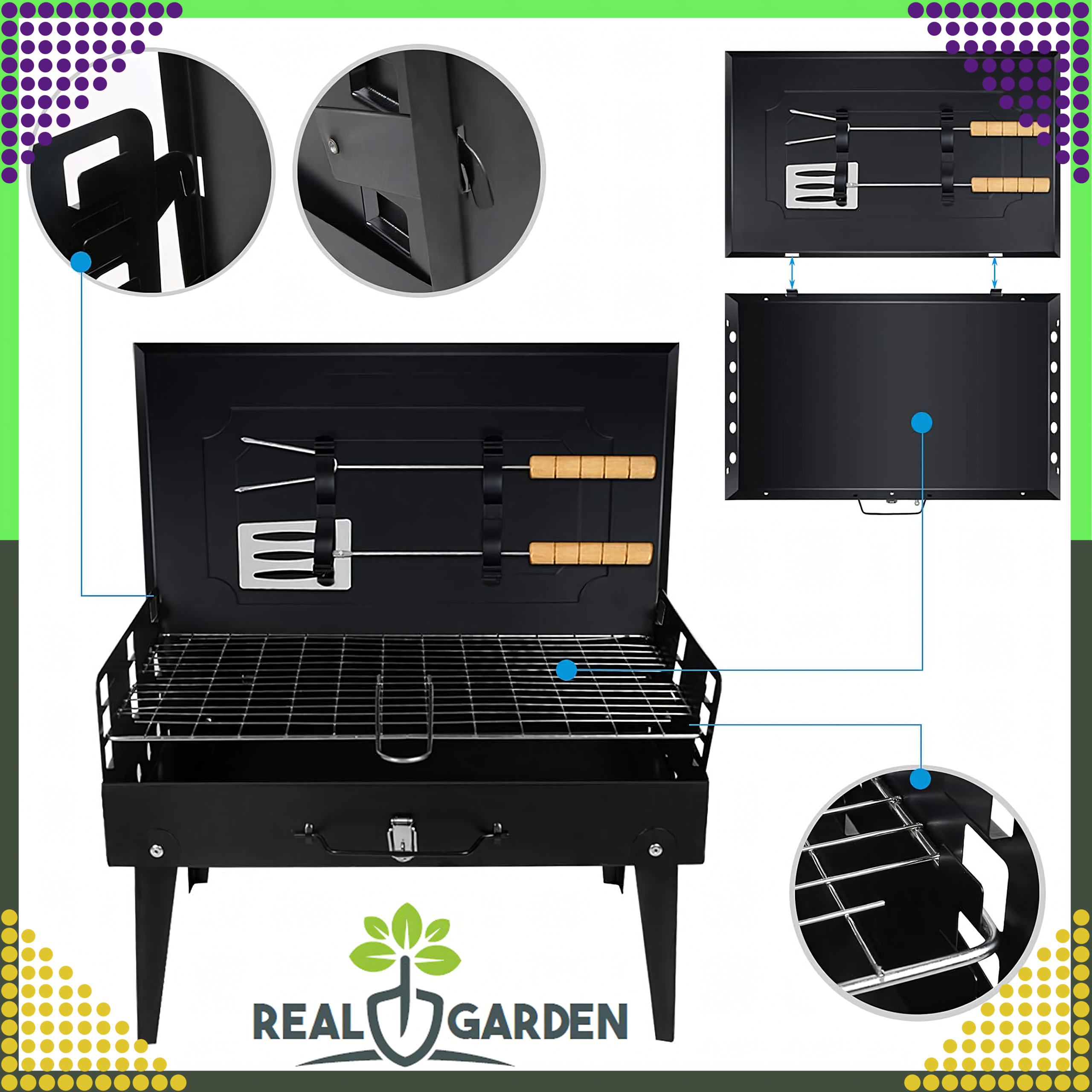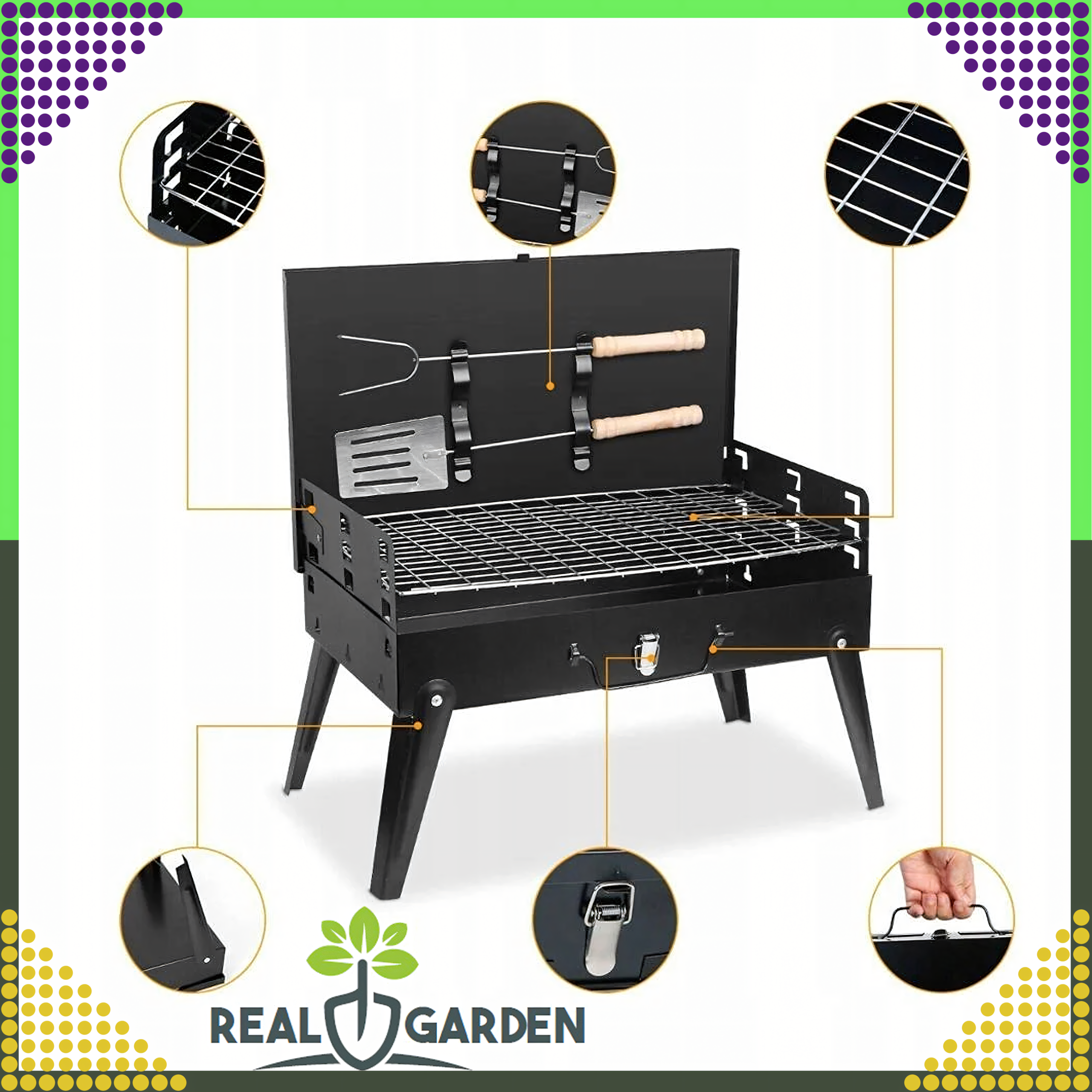 ✔️ Składany ✔️ Przenośny ✔️ Wymiar: 44x27x47 ✔️ Kolor: Czarny ✔️ Ruszt + Sztućce