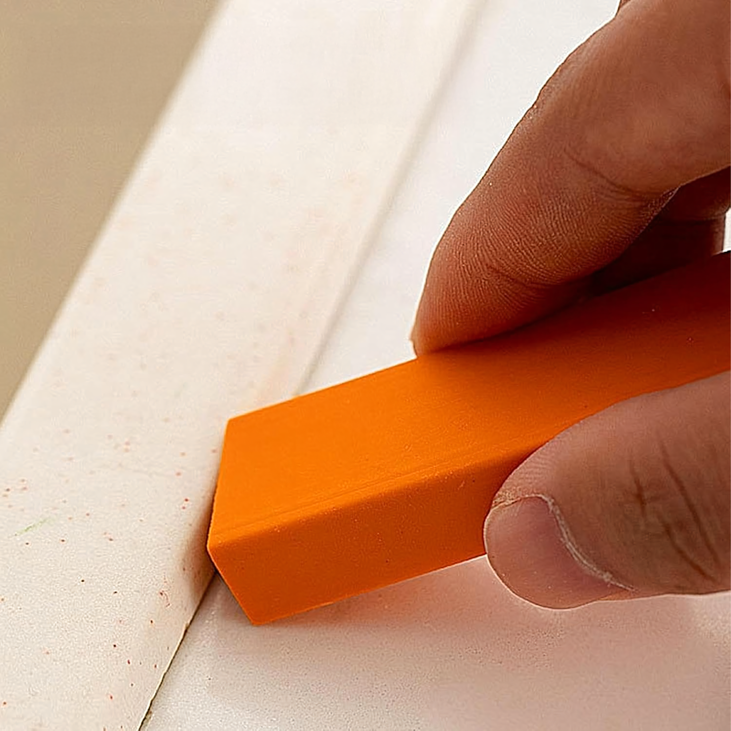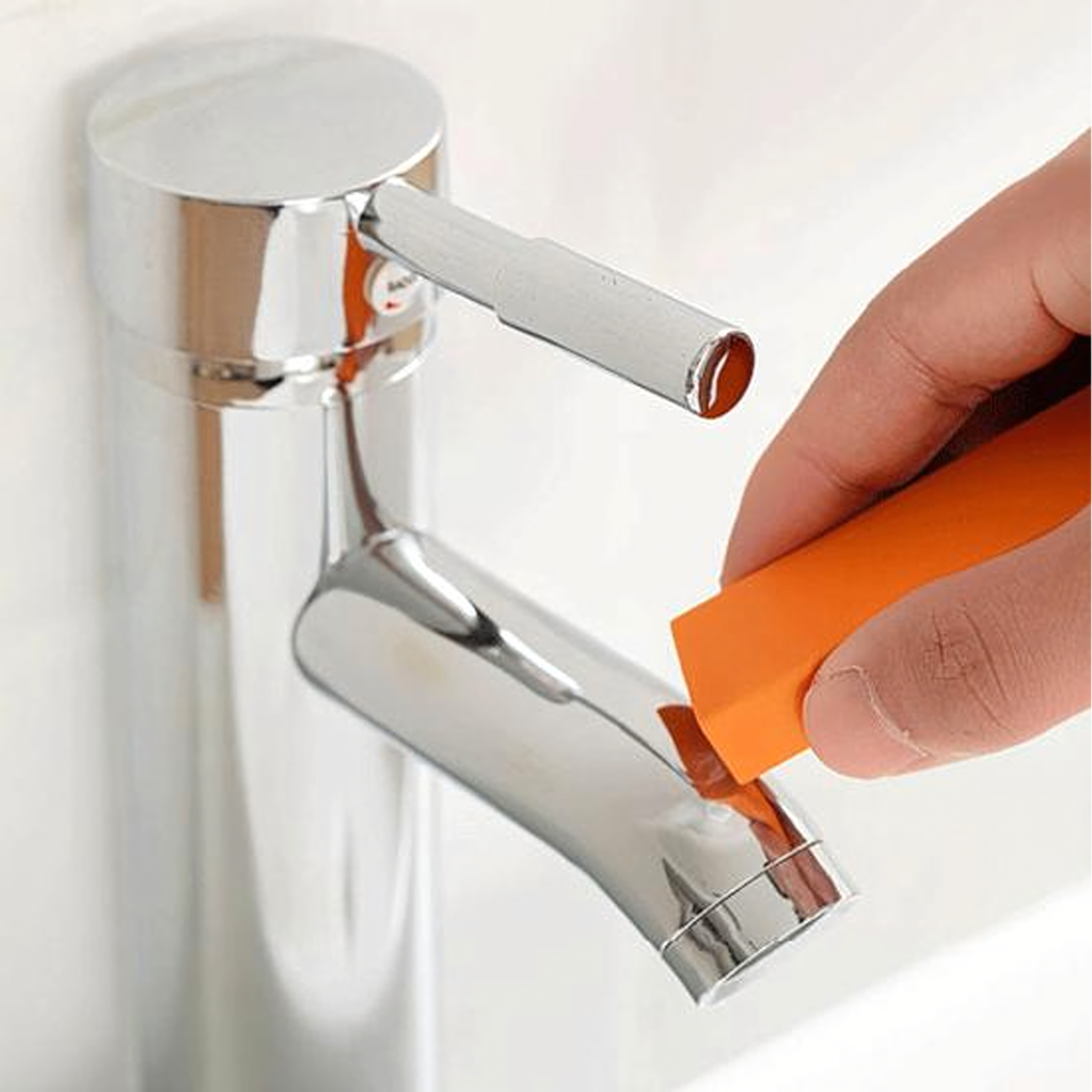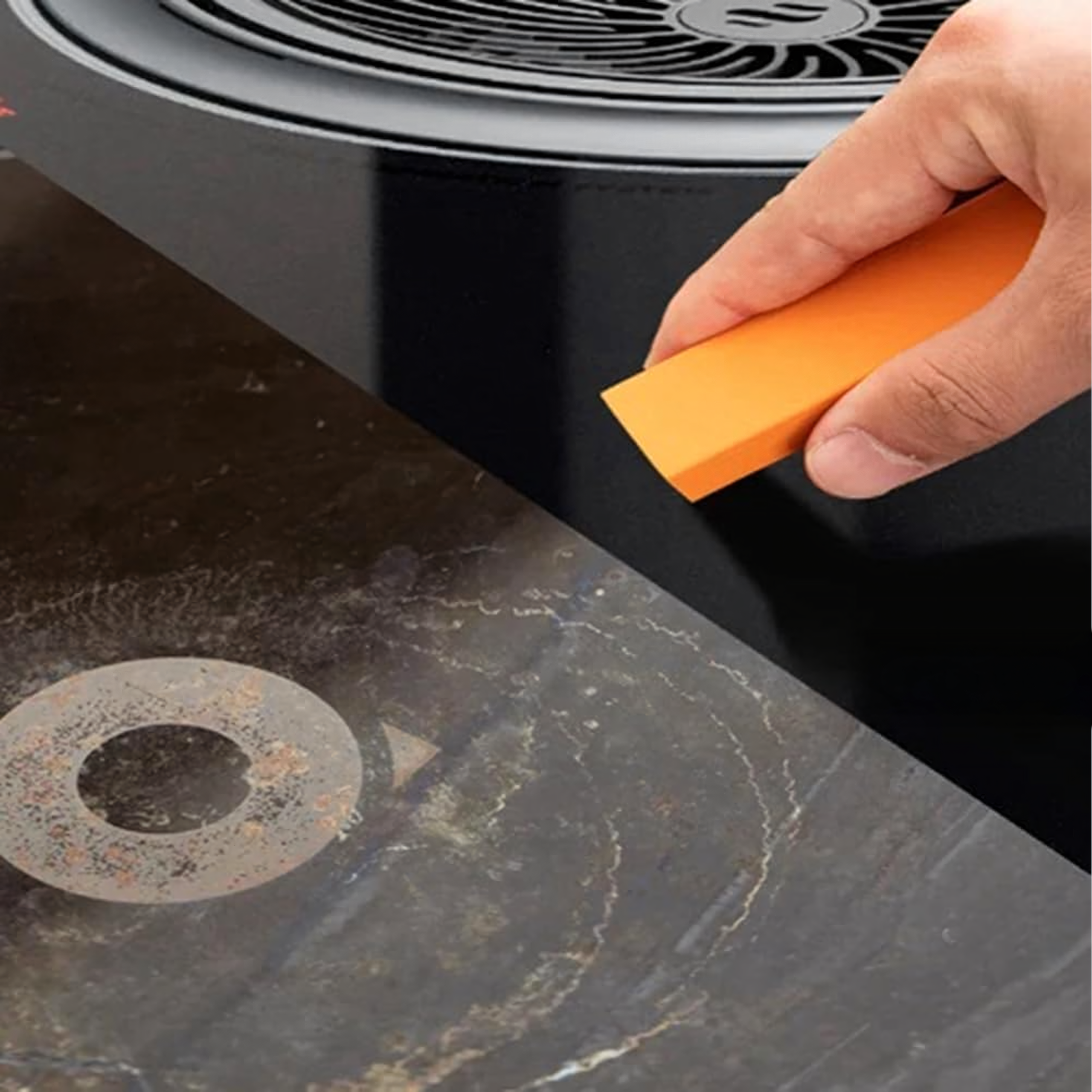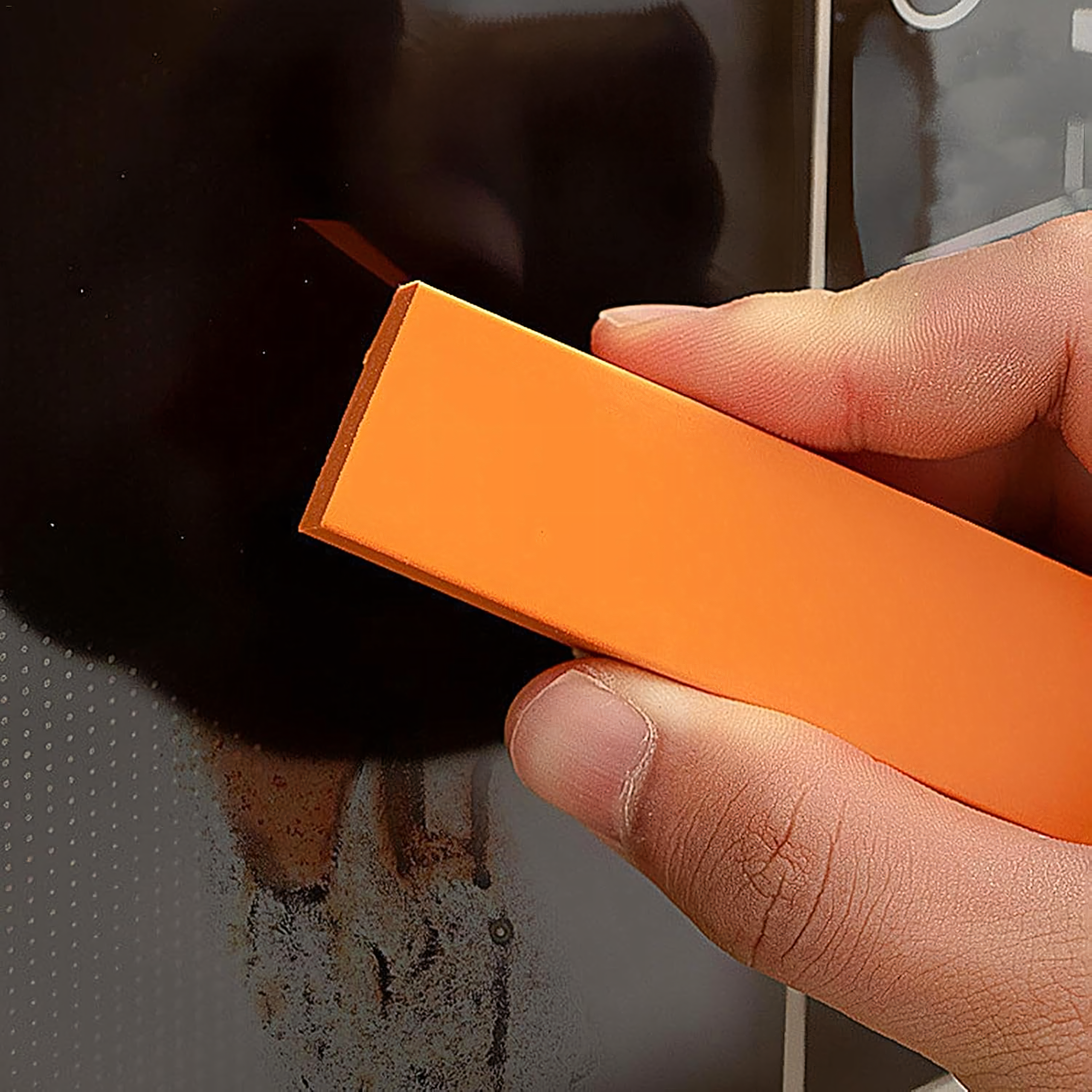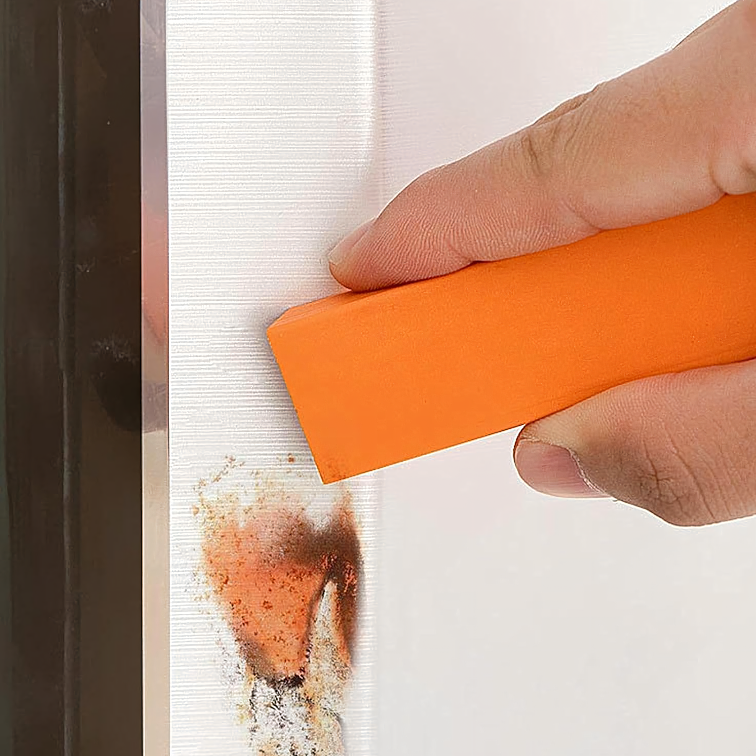 Gumka do usuwania kamienia, rdzy i plam – skuteczne narzędzie wielokrotnego użytku, które działa bez chemii. Wystarczy przetrzeć zabrudzoną powierzchnię, aby szybko i bez wysiłku usunąć osady z metalu, szkła czy ceramiki. Idealna do kuchni, łazienki i trudnych zabrudzeń w domu.