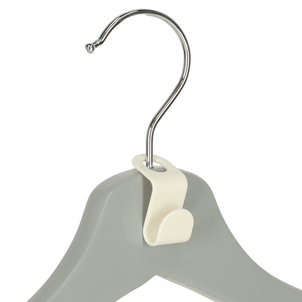 Praktyczne haczyki na wieszaki, które ułatwią Ci organizację i zachowanie porządku w szafie czy w garderobie. Tworzywo: plastik. Kolor: biały. Ilość: 10szt. Szerokość: 2cm. Średnica otworu do powieszania na wieszaku: 1cm.