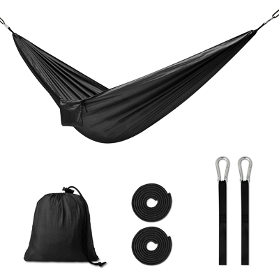 Hamak biwakowy turystyczny podróżny przenośny na biwak 260cm 120kg + pokrowiec czarny