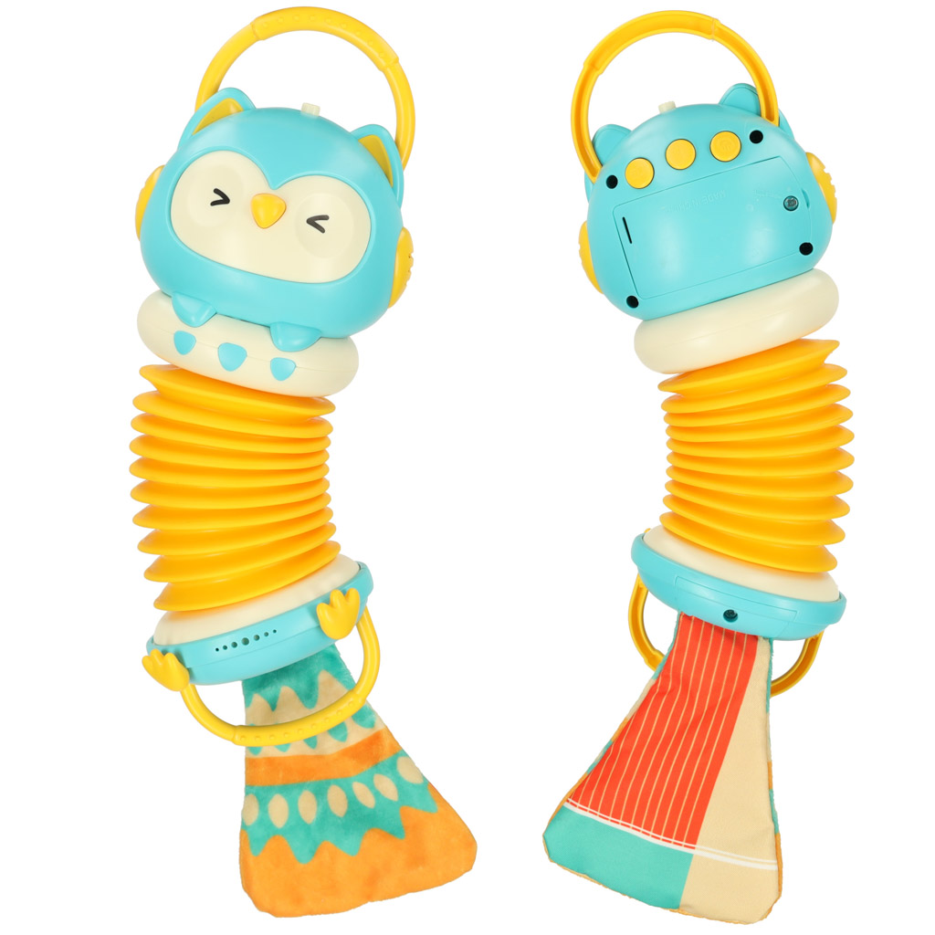 Harmonia akordeon zabawka sensoryczna dla dzieci sowa niebieska grająca LED 30cm
