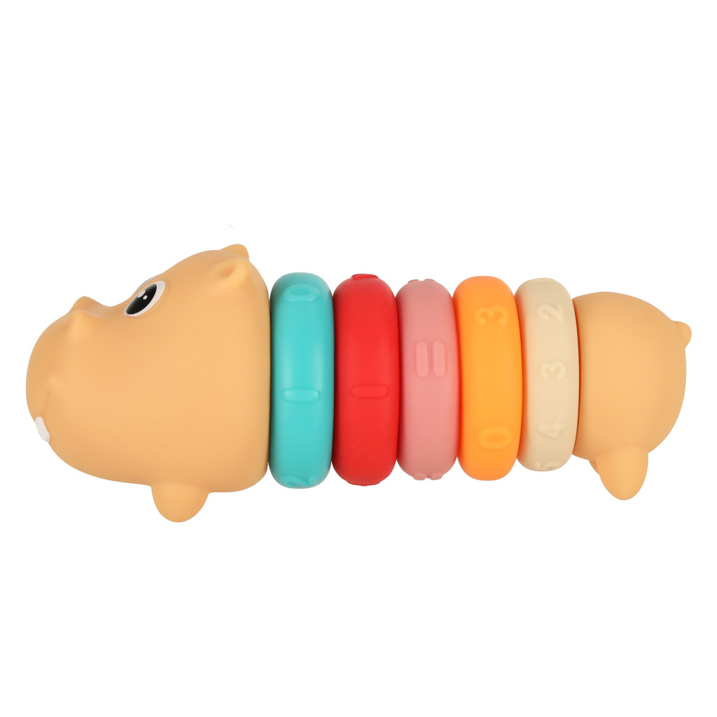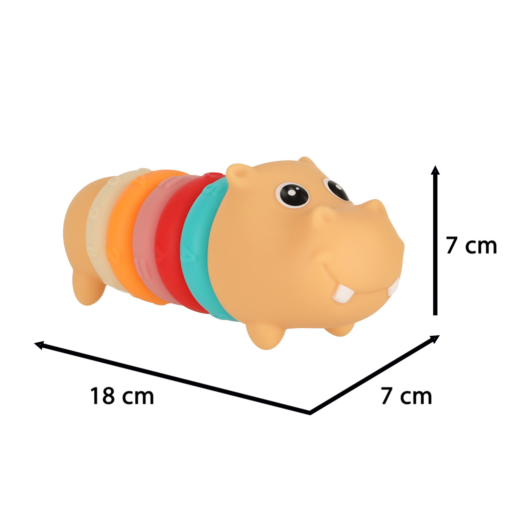 Mięciutki hipopotam – zabawka edukacyjna, która zajmie każdego malucha na długi czas! Liczby i znaki matematyczne na ciele zwierzaka wprowadzą dzieci w świat matematyki. Tworzywo: silikon. Wiek: 6+. Wymiary: 18 cm x 7 cm x 7 cm.