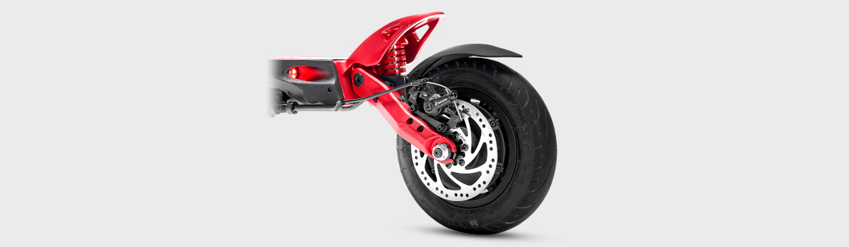 Hamulce tarczowe gwarantują pewne hamowanie nawet w przypadku konieczności nagłego zatrzymania się. System E-ABS zwiększa natomiast bezpieczeństwo używania hamulców, zapobiegając blokowaniu się kół. Aby uzyskać najwyższy poziom zabezpieczenia podczas wykonywania nagłego manewru, w hulajnodze elektrycznej Mantis 10 zamontowano oświetlenie pulsacyjne, które włącza się podczas hamowania. Dzięki temu już z daleka dajesz innym sygnał o konieczności zatrzymania się, gdy na drodze pojawia się przeszkoda.