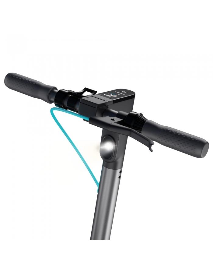 Hulajnoga posiada dwa rodzaje hamulców, dzięki którym jesteś bezpieczny i jednocześnie dbasz o ekologię. Przedni hamulec bębnowy jest wytrzymały i bardzo łatwy w utrzymaniu. Wystarczy lekki nacisk, aby sprawnie wyhamować przed przeszkodą. Zamknięta konstrukcja zabezpiecza hamulce przed deszczem i wilgocią. System KERS odzyskuje energię podczas hamowania, zasilając przy tym baterię, co zwiększa zasięg i pozwala jeździć dłużej na jednym ładowaniu. rzednie oświetlenie o zwiększonej mocy 2.5 W gwarantuje dobrą widoczność po zmroku. Bezpieczeństwo zapewniają również odblaski umieszczone na tylnym kole. Pulsacyjne oświetlenie włączane podczas hamowania ostrzega innych uczestników drogi o tym, że się zatrzymujesz. Dzięki niemu inni również zahamują lub swobodnie Cię ominą.