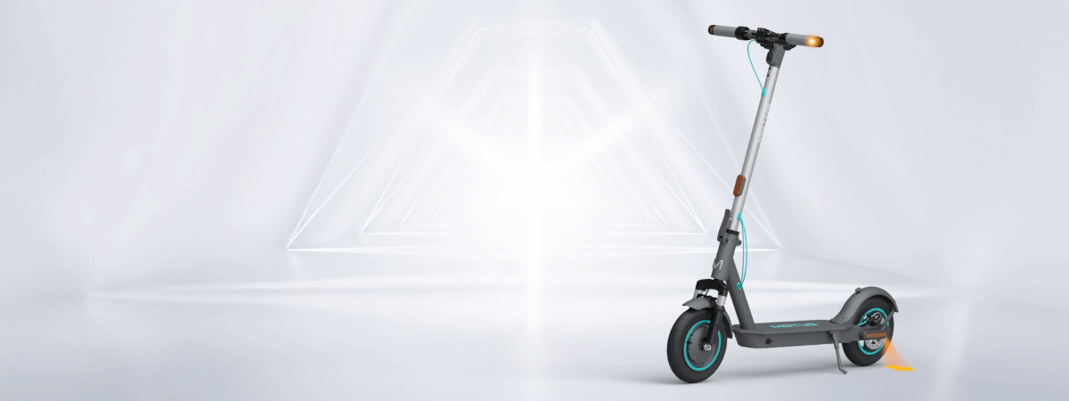 Hulajnoga wyposażona jest w projekcyjne kierunkowskazy, które rzutują strzałkę na nawierzchnię, informując innych uczestników ruchu o Twoich zamiarach. Przedni hamulec bębnowy zapewnia pewne zatrzymanie, a system KERS odzyskuje energię podczas hamowania, wydłużając zasięg do 30 km (bateria 15Ah). Certyfikat IPX4 chroni przed zachlapaniami i kurzem, a pulsujące tylne światło sygnalizuje hamowanie.