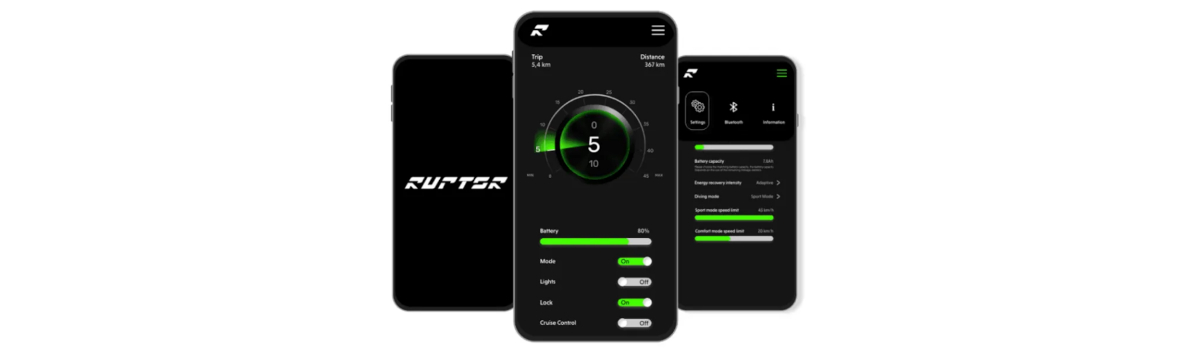 Hulajnoga Ruptor R1 posiada moduł BT, co oznacza, że możesz sprawdzić stan swojego pojazdu w czasie rzeczywistym. Bez problemu zmienisz również jego ustawienia, a dzięki aplikacji masz stały dostęp do najważniejszych danych i mapek. Wystarczy kilka kliknięć, aby włączyć alarm i uruchomić blokadę, aby zabezpieczyć hulajnogę przed niepowołanymi dłońmi.