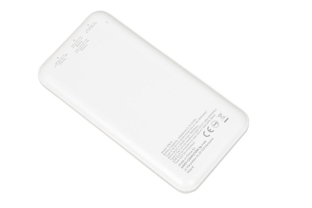 Pojemność: 10000 mAh • Technologia: Litowo-jonowa (Li-Ion) • Kolor: Biały.