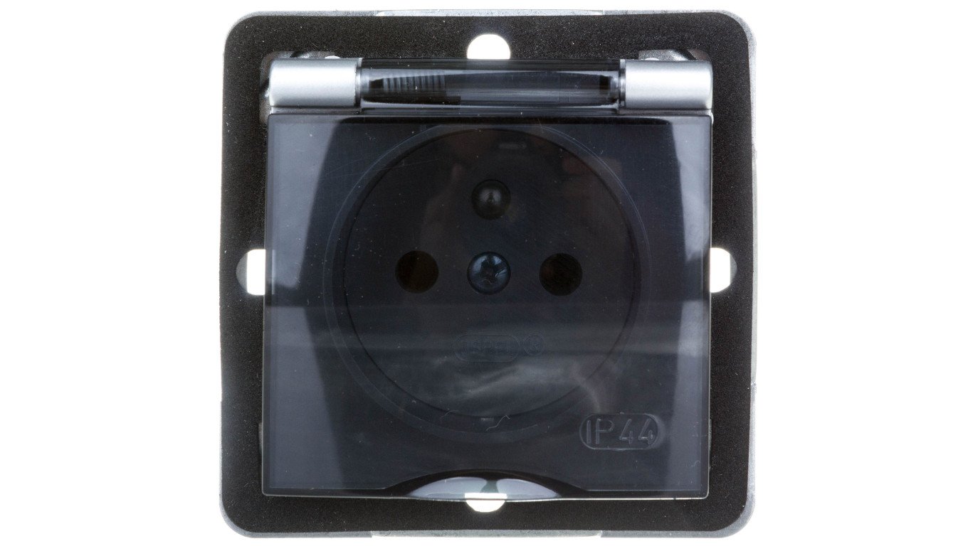 IMPRESJA Gniazdo bryzgoszczelne z/u IP44 klapka przezroczysta srebrne GPH-1YZ/m/18/d